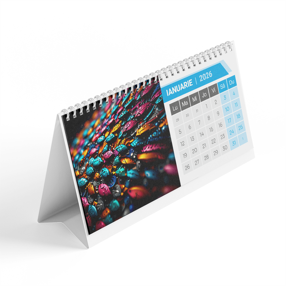 Calendarele personalizate de birou le tipărim pe hârtie lucioasă sau mată în funcție de solicitări.