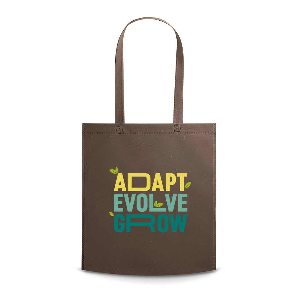 Sacoșă personalizată nețesută (80 g/m²) sigilată termic, cu mânere de 75 cm, disponibilă într-o gamă largă de culori.