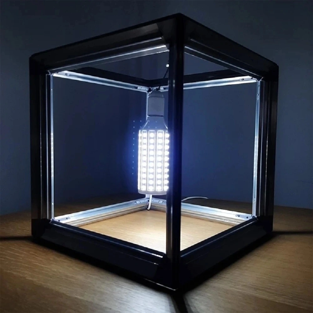 Cub luminos LED Lightbox cu 6 fețe personalizabile din material textil backlit. Portabil și reutilizabil. Dimensiuni variate.