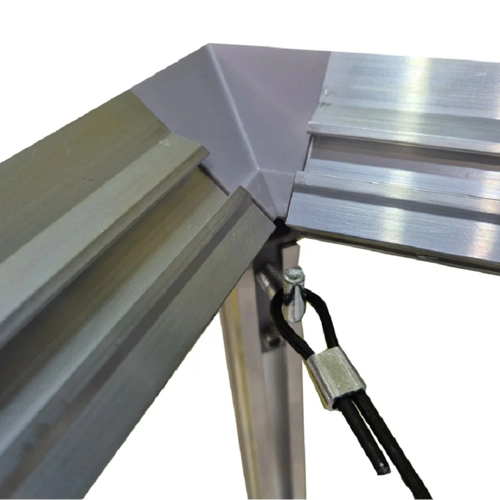Pachetul conține o structură din aluminiu durabil și 6 fețe personalizabile cu print textil, ceea ce permite o expunere completă, din toate unghiurile.