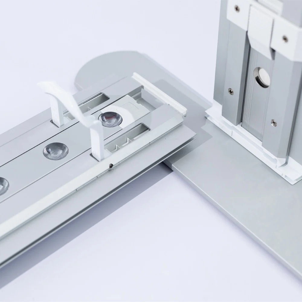 Structura din aluminiu anodizat oferă stabilitate și un aspect elegant, potrivit pentru orice tip de prezentare.