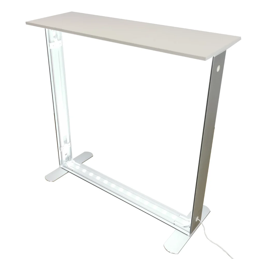 Desk portabil luminos (Lightbox) cu structură din aluminiu anodizat, imprimat prin sublimare directă la rezoluție înaltă pe backlit textil cu dispersie luminoasă ridicată.
