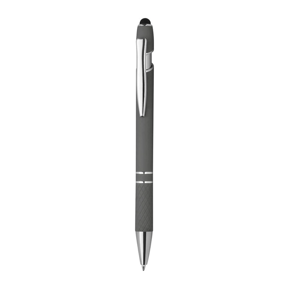 Pix din aluminiu cu accente argintii, grip cu model, funcţie touch și mină albastră.